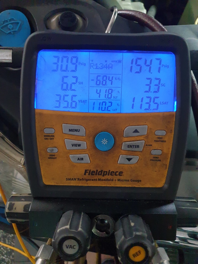 風箱仁漏冷媒NISSAN BLUEBIRD 2000cc 冷氣不夠冷.冷氣健診專用儀器測快速10分鐘抓漏完成.風箱仁蒸發器漏冷媒.不拆儀錶更換蒸發器.清洗潤滑油及冷媒換新重灌.冷房效率一級棒11.8度c 毅修汽車專業冷氣